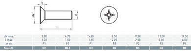 Countersunk Phillips Metal Thread 304 M4X12 - Box of 100